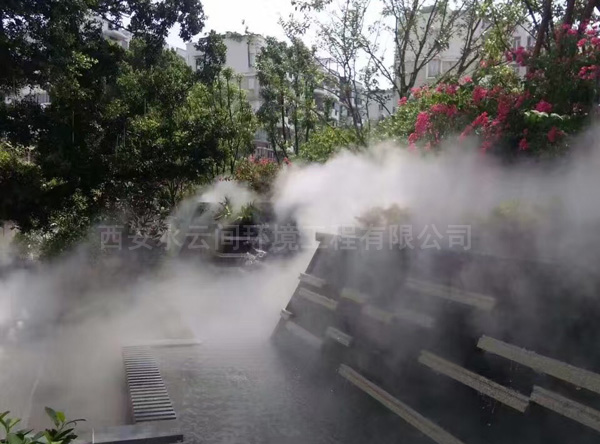 造霧是一種人為制造出來的霧,跟自然形成的霧相似度達(dá)到90%以上。人工造霧在景觀方面的應(yīng)用是采用高壓力射流噴霧式原理,利用高壓造霧設(shè)備將過濾的水加壓到60-80公斤,水通過高壓管道傳輸?shù)桨惭b好的各個(gè)霧