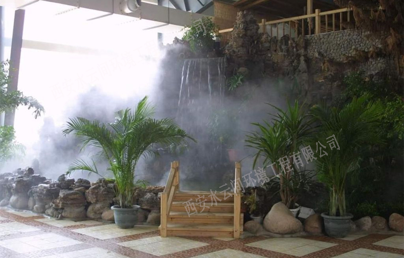 1.造景和保濕:霧既可輕盈婉約,虛無(wú)飄渺,又可溟溟漠漠,浩浩漫漫,即可單獨(dú)成景,自成一方天地,又可結(jié)合水系、假山、綠植、燈光等各種元素而形態(tài)各異,相得益彰。其變化多端的形態(tài)和功能,將為中國(guó)園林的景觀意境更添水墨元素。其特有的保濕功能,能更好的兼具植物的養(yǎng)護(hù)和生長(zhǎng);