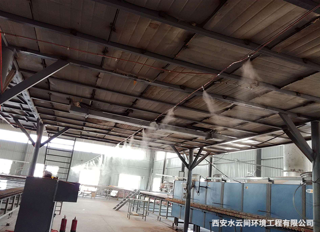 廠房車間內(nèi)空間較大,車間內(nèi)人員活動,機(jī)器散發(fā)的熱量在夏季的時候車間內(nèi)溫度更加炎熱。單純的依靠中央空調(diào)降溫,前期設(shè)備投入,后期運行費用較大。采用高壓噴霧系統(tǒng)可以有效的降低夏季車間降溫的尷尬情況。噴霧降溫是以水為介質(zhì),采用物理的方法,將水霧化,利用水霧細(xì)小吸熱迅速,快速降低車間內(nèi)溫度。高壓霧化設(shè)備霧化徹底,耗水量少,不易形成積水。車間噴霧配合車間內(nèi)通風(fēng)設(shè)備,保持一個良好的空氣濕度,穩(wěn)定水霧蒸發(fā)量。能有效的降低3-5℃,。