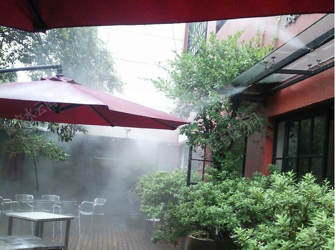 戶外空間環(huán)境降溫,可以局部地控制大環(huán)境的溫度。人造霧降溫系統(tǒng)散發(fā)到空氣中的水微粒,在汽化的過程中要吸收大量周圍環(huán)境中的熱量,蒸發(fā)冷卻從而降低周圍環(huán)境溫度的原理,是戶外防暑降溫的有效手段。
