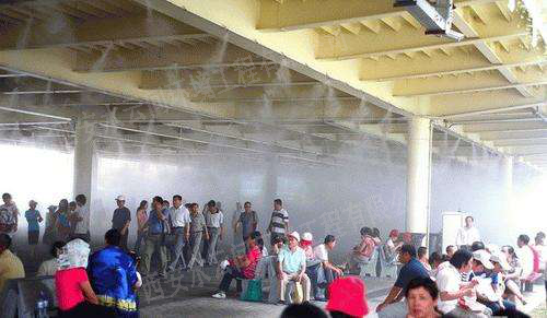 戶外空間環(huán)境降溫,可以局部地控制大環(huán)境的溫度。人造霧降溫系統(tǒng)散發(fā)到空氣中的水微粒,在汽化的過程中要吸收大量周圍環(huán)境中的熱量,蒸發(fā)冷卻從而降低周圍環(huán)境溫度的原理,是戶外防暑降溫的有效手段。