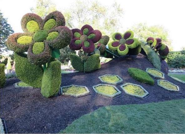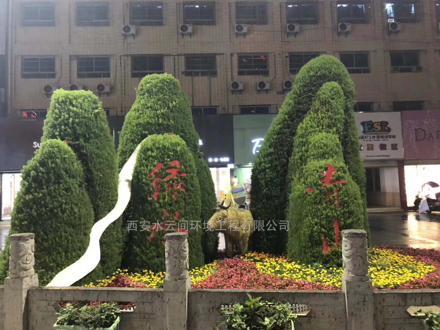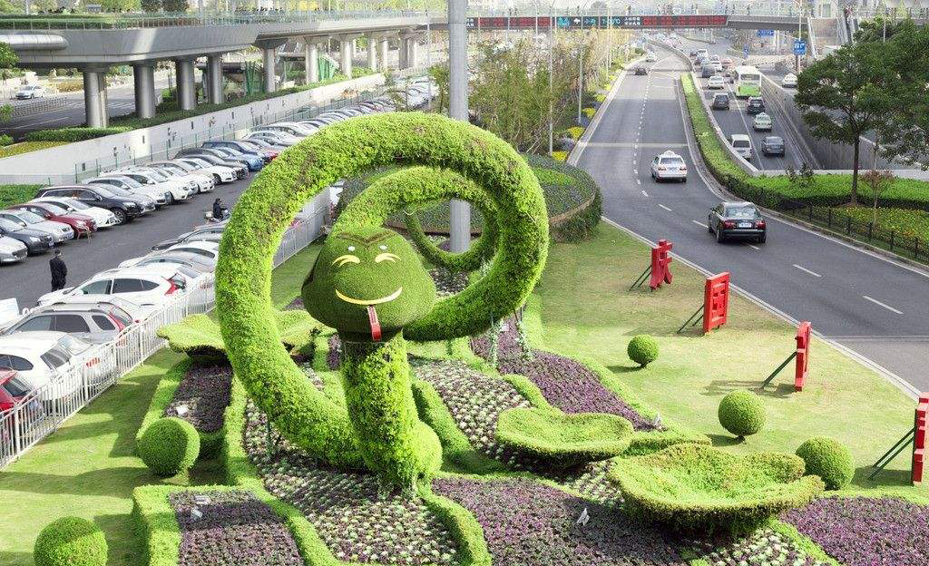植物雕塑是有生命的植物雕塑,一般內(nèi)設(shè)鋼材構(gòu)架,然后在構(gòu)架上填充栽培土,再于其上種植一年生或多年生小灌木或草本植物,即采用掛泥插草或卡盆工藝把不同顏色的花草覆蓋在結(jié)構(gòu)造型的表面,巧妙地把雕塑造型與花卉園藝結(jié)合在一起,鋼架表面的植物覆蓋率至少要達到80%。